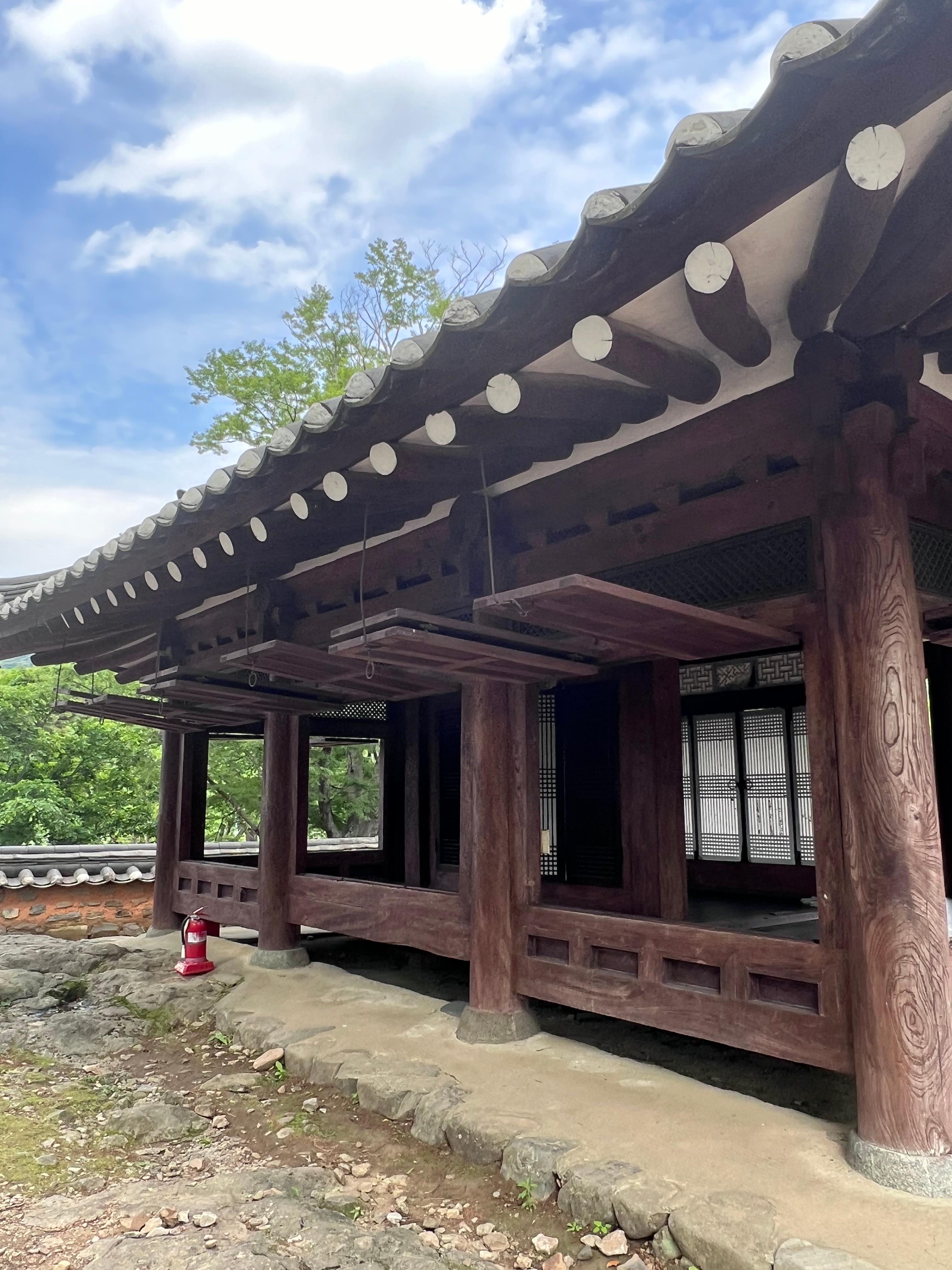 현재의 건물은 1929년에 중건된 것으로, 팔작지붕 형태의 정자 구조를 유지하고 있습니다. 정면 3칸, 측면 2칸이며 앞뒤로 툇마루가 길게 뻗어 있어 사방이 탁 트여 있습니다. 내부에는 온돌방이 설치되어 있어 옛 선비들이 풍류를 즐기고 사색하던 공간의 흔적이 남아 있죠.