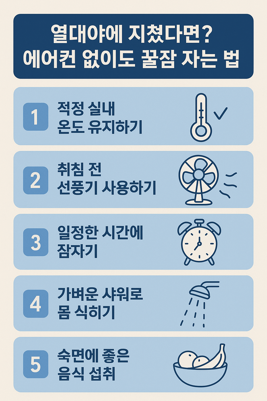 #열대야 #여름꿀잠 #냉방병예방 #에어컨없이자는법 #수면루틴 #여름건강관리 #숙면음식 #수면습관 #건강한밤