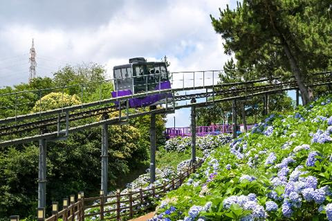 고래를 형상화한 귀여운 디자인의 모노레일을 타고