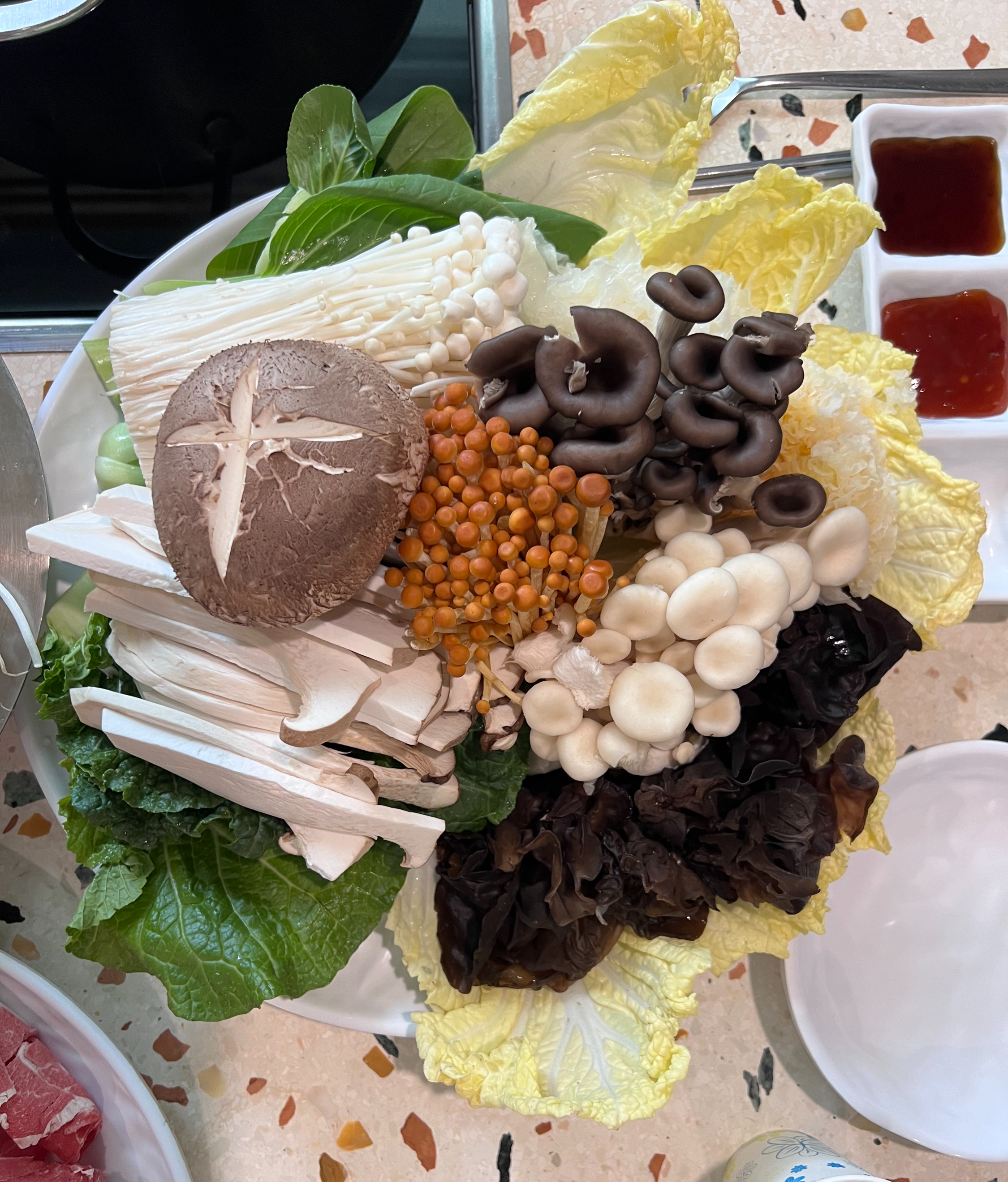 - 샤브 정식 (고기+야채+버섯+칼국수+죽)