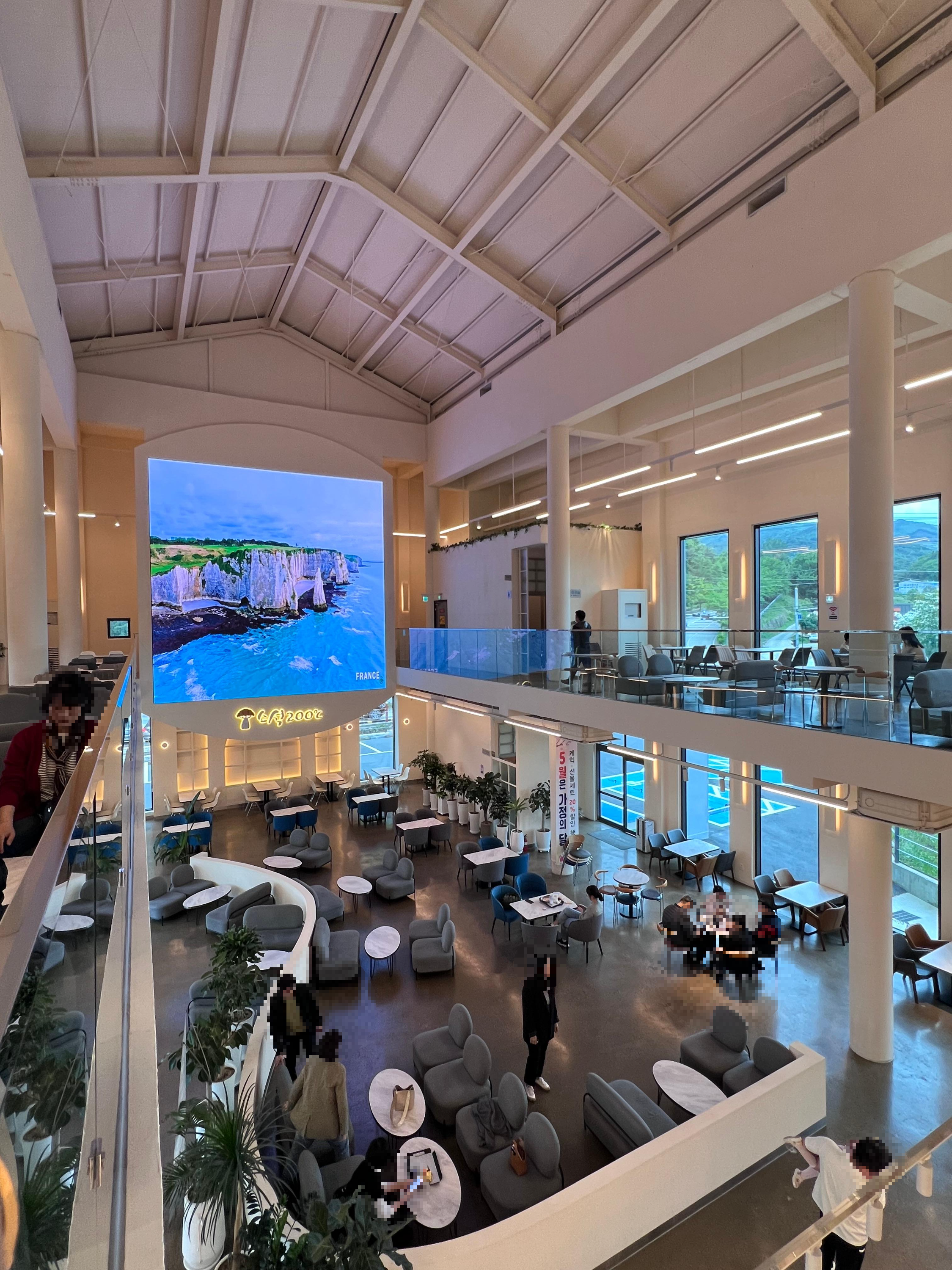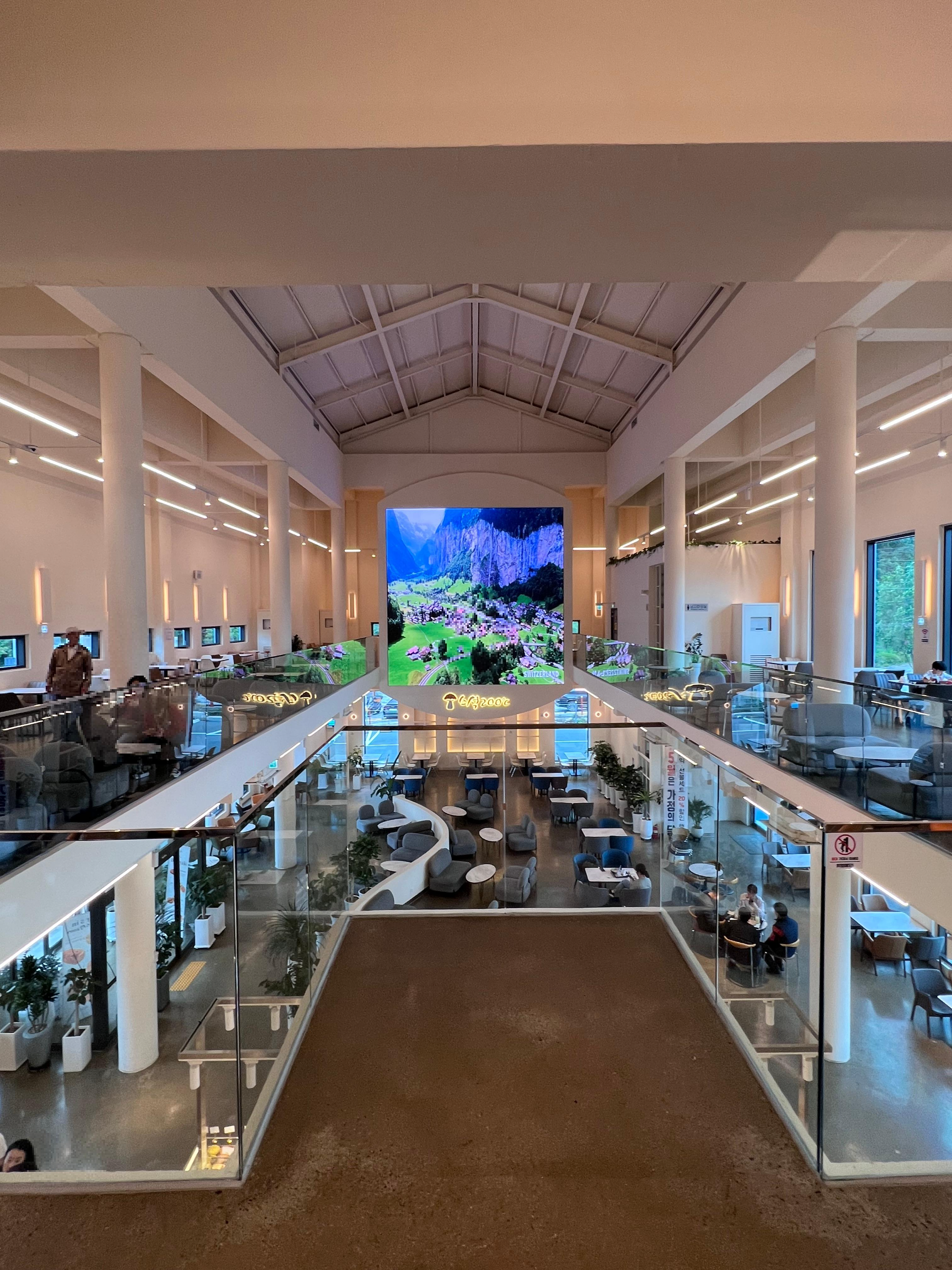 실내 뷰를 완성하는 대형 스크린은 자연 영상을 통해 색다른 느낌을 주는데 영상미가 커피를 마시며 감상하기 좋았습니다.