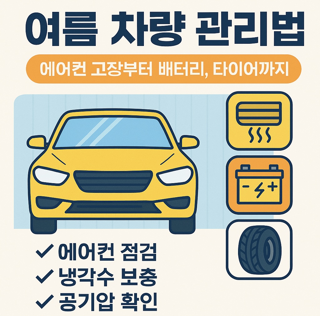 여름 차량 관리|차량 에어컨 관리법|자동차 냉방병|에어컨 냄새 제거|배터리 방전 예방|차량 냉각수|여름철 오버히트|차량 타이어 점검|고속도로 에어컨 고장 대처, 여름철 차량용 냉방 템, 장거리 차량관리법